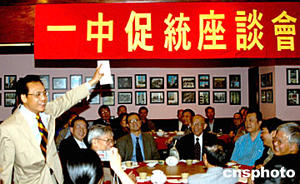 當(dāng)?shù)貢r(shí)間五月二十日,紐約中國(guó)和平統(tǒng)一促進(jìn)會(huì)在法拉盛舉行“一中促統(tǒng)”座談會(huì),前紐約中華公所主席伍廷典(右四)與會(huì),與會(huì)僑胞同聲抨擊陳水扁“五二0講話”。這是紐約傳統(tǒng)僑團(tuán)首次公開參加紐約僑界的“反獨(dú)促統(tǒng)”活動(dòng)。作者:趙海燕