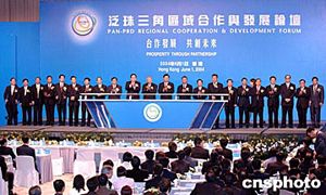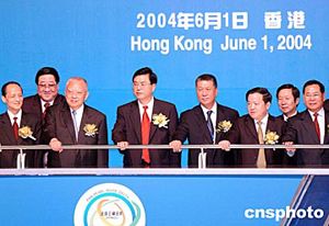 香港特區(qū)行政長(zhǎng)官董建華、廣東省委書(shū)記張德江、泛珠三角九個(gè)省、以及香港和澳門(mén)特區(qū)領(lǐng)導(dǎo)人主持開(kāi)幕儀式。作者:洪少葵