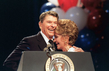 曾經(jīng)是好萊塢電影明星的里根,一九三七年到一九六四年期間,共拍攝了五十一部影片,多為喜劇片和情感片,后當(dāng)選加州州長(zhǎng),開(kāi)始從政之路--這條路正被動(dòng)作巨星施瓦辛格重蹈。風(fēng)度翩翩、明星出身的總統(tǒng)使得里根在任上受到不少人的擁捧,但也受到不少人對(duì)他執(zhí)政能力的質(zhì)疑。他曾被民主黨人譏笑為“親切的傻瓜”,但里根一九八九年一月以七十八歲高齡離開(kāi)白宮時(shí),卻成為離任時(shí)民望最高的現(xiàn)當(dāng)代美國(guó)總統(tǒng)。
