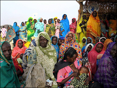 中新網(wǎng)6月14日電 在蘇丹達(dá)爾福爾地區(qū)的一座難民營,難民們正在等待接受救濟(jì)食品的發(fā)放。(春風(fēng))