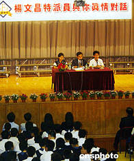 中央人民政府外交部駐香港特別行政區(qū)特派員公署特派員楊文昌,六月十五日出席香港福建中學(xué)舉行的“楊文昌特派員與你真情對(duì)話”活動(dòng)。中新社記者:錢興強(qiáng)