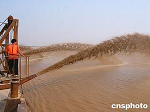 黃河開(kāi)始“人工擾沙”沖淤作業(yè) (2004-06-22)