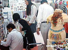 正在香港會展中心舉辦的“2004亞洲時尚首飾及配飾展”,周六吸引眾多參觀者,是次展會有400逾家來自20個國家及地區(qū)的參展商,展示最新時尚首飾及配飾。作者:錢興強(qiáng)
