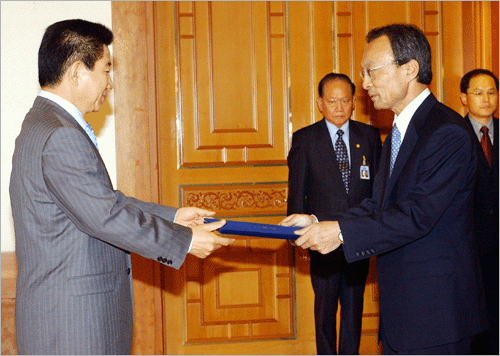 中新網(wǎng)6月30日電 據(jù)韓國(guó)《朝鮮日?qǐng)?bào)》報(bào)道,李海瓚30日正式就任韓國(guó)新任國(guó)務(wù)總理。他當(dāng)天表示:“在參與政府第二期國(guó)政啟動(dòng)的現(xiàn)在,是我們所有公務(wù)員大顯身手的絕好機(jī)會(huì),為積極推進(jìn)盧武鉉總統(tǒng)在17屆國(guó)會(huì)開(kāi)院致賀辭時(shí)作為國(guó)政課題提出的‘政府革新’和‘鏟除腐敗’而努力。”