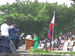 阿羅約于2001年以副總統(tǒng)身份接替在壓力下下臺的前總統(tǒng)埃斯特拉達(dá)出任總統(tǒng)。她于今年5月10日的總統(tǒng)選舉中勝出。但她的競選對手卻指選舉舞弊,拒絕接受選舉結(jié)果。