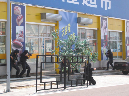 中新網(wǎng)7月11日電 隨著一聲號(hào)令,北京警察學(xué)院的操練場(chǎng)上,警車呼嘯而出,警燈閃爍,場(chǎng)面驚心動(dòng)魄。一場(chǎng)帶有實(shí)戰(zhàn)性質(zhì)的,以處置突發(fā)事件和反恐怖犯罪活動(dòng)為主題的京城特警反恐防暴演習(xí)拉開戰(zhàn)幕。這是日前發(fā)生在由北京市公安局組織的,旨在以練促戰(zhàn)的北京警方反恐防暴演習(xí)現(xiàn)場(chǎng)的一幕。
