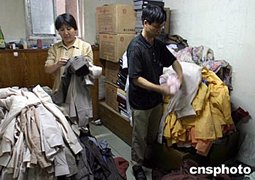 十二日北京小商品批發(fā)城的商戶正在清理被雨水浸泡過的地下室?guī)旆浚本┣皟扇盏谋┯暝斐稍摰叵率曳e水三十公分,損毀了大批貨物。中新社記者:廖文靜