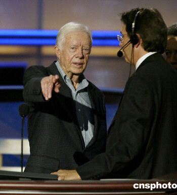 在美國前總統(tǒng)卡特、克林頓之前,民主黨前總統(tǒng)候選人戈爾首先登臺,并作“現(xiàn)身說法”。戈爾指出,他呼吁部分選民不要向4年前他與布什對陣時那樣,將選票投給“保守”的布什。
