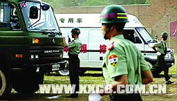 “命令所有車輛快速進入裝載點!”指揮官一聲令下,武警戰(zhàn)士躍上運輸車,尖銳的警笛聲刺破云霄,數十輛運輸車飛速駛向裝載點,車后揚起一片灰塵。