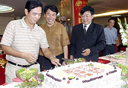 八月一日晚,秦皇島市人民政府,中信實業(yè)銀行,中國移動通信集團在海濱城市秦皇島為即將奔赴雅典的國家乒乓球隊領(lǐng)導和運動員舉行壯行酒會。中新社記者:張勤