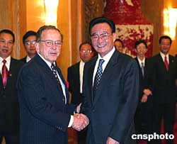 在談到香港問題時(shí),吳邦國(guó)說,香港回歸七年多來,中國(guó)政府切實(shí)貫徹“一國(guó)兩制”、“港人治港”、高度自治的方針,嚴(yán)格按照香港基本法辦事。香港大局穩(wěn)定,香港的國(guó)際貿(mào)易、金融和航運(yùn)中心地位進(jìn)一步鞏固。今年四月,中國(guó)全國(guó)人大常委會(huì)對(duì)香港基本法附件有關(guān)規(guī)定的解釋,以及對(duì)二00七年特區(qū)行政長(zhǎng)官、二00八年立法會(huì)的兩個(gè)產(chǎn)生辦法有關(guān)問題的決定,是完全符合憲法和香港基本法的,目的是維護(hù)香港的長(zhǎng)期繁榮穩(wěn)定。希望美方履行在香港問題上的承諾,這符合包括美國(guó)在內(nèi)的國(guó)際社會(huì)的共同利益。