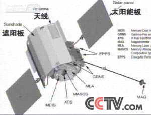 遮陽傘:用來保護(hù)飛船免受太陽直射,使飛船的電子設(shè)備和儀器即使在水星這樣的熱環(huán)境里也能正常運(yùn)行。