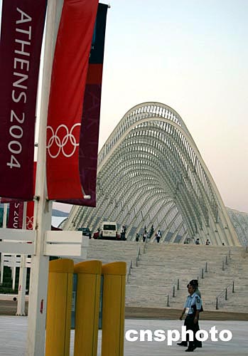 當(dāng)?shù)貢r(shí)間8月3日晚,雅典奧運(yùn)會(huì)體育中心在夕陽(yáng)映照顯得別具一格。中新社記者:任晨鳴