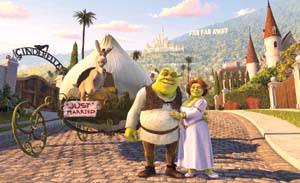 中新網(wǎng)8月11日電 據(jù)京華時(shí)報(bào)報(bào)道,集各種幽默元素于一體的“全球最賣(mài)座的3D動(dòng)畫(huà)片”《怪物史瑞克2》,昨天起在全國(guó)上映!皹O盡嘲諷調(diào)侃之能事”是影評(píng)人給予這部動(dòng)畫(huà)片的普遍評(píng)價(jià)。那么究竟有多少經(jīng)典影片片段被該片移花接木、有多少經(jīng)典形象被該片無(wú)情戲弄?敬請(qǐng)看《史瑞克2》爆笑解讀。