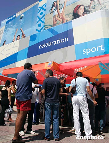 雅典奧運會開幕在即,市民正在售票點排隊購買門票。據(jù)雅典奧組委官員透露,截至目前,奧運門票依然有一半銷售不出去。中新社記者:張煒