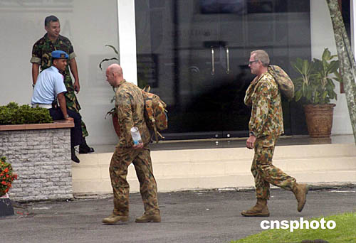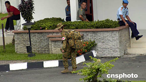 受到印度洋海嘯災(zāi)難影響的印度尼西亞班達(dá)亞齊災(zāi)民撤離到棉蘭市,世界各地的賑災(zāi)物品陸續(xù)運(yùn)抵棉蘭市機(jī)場(chǎng),澳洲軍人在棉蘭機(jī)場(chǎng)參加救援工作。作者:洪少葵