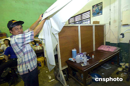 1月6日,印度尼西亞棉蘭市華族收容所的義工向記者展示簡陋的衛(wèi)生設(shè)施,華族義工醫(yī)生就是在此為受海嘯災(zāi)難受傷的災(zāi)民贈醫(yī)施藥,他們希望盡快收到救援物品以解燃眉之急。作者:洪少葵