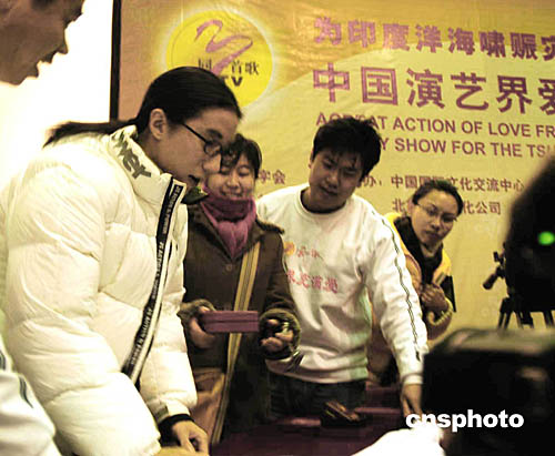 來(lái)自四面八方的社會(huì)各界人士六日在北京參加“中國(guó)演藝界愛心大行動(dòng)為印度洋海嘯賑災(zāi)義演”。
