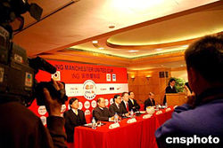 由ING安泰人壽保險(xiǎn)冠名贊助的“安泰曼聯(lián)杯”足球賽,將在7月于香港舉行,1月17日,香港足球總會(huì)及贊助商召開(kāi)記者會(huì),公布英超聯(lián)勁旅曼聯(lián)與香港足球隊(duì)的賽事。作者:洪少葵