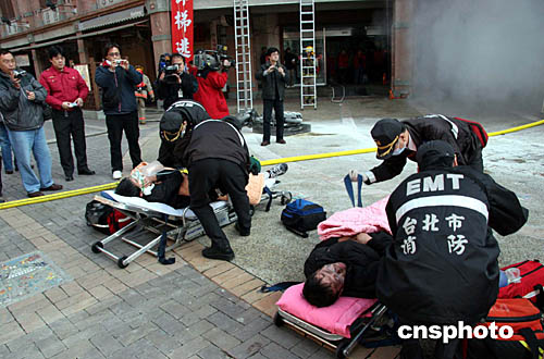 如果沒(méi)有各路媒體記者舉著“長(zhǎng)槍短炮”從容地走來(lái)走去,沒(méi)有小小的人群悠閑地觀望,這種場(chǎng)面真會(huì)讓人以為一場(chǎng)火災(zāi)正在發(fā)生。其實(shí),“臺(tái)北年貨大街”就在這場(chǎng)演習(xí)中拉開(kāi)序幕了。