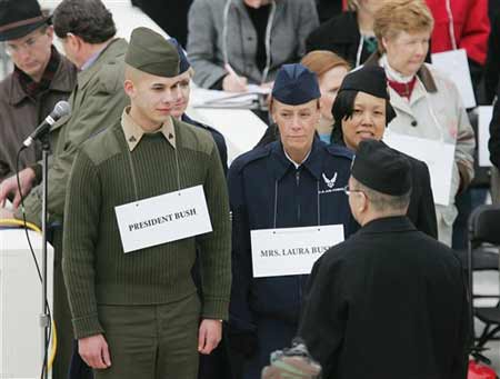 美國總統(tǒng)布什的連任就職典禮定于本月20日舉行。成功擊敗民主黨候選人克里的布什即將再次舉起右手,重復(fù)4年前的誓言。為保證儀式的順利進行,有關(guān)部門9日在國會大廈舉行了一次預(yù)演。