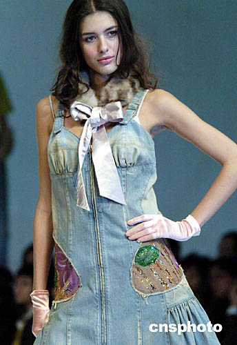 1月19日,香港會展中心舉行的“香港時裝節(jié)秋冬系列2005”上,模特在T型舞臺演繹“獨家時裝表演”專場的設計師最新服飾系列。作者:洪少葵