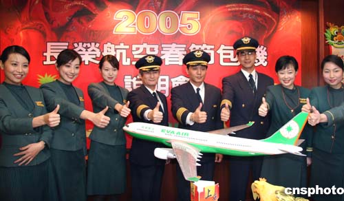 臺灣長榮航空公司參加臺商春節(jié)包機(jī)首航的機(jī)組人員二十七日下午與媒體見面。據(jù)悉,長榮航空此次將執(zhí)行四個(gè)往返、共八個(gè)航班,往返臺北——北京、臺北——上海,時(shí)間分別是一月二十九日、二月七日和二月十五日。作者:邢利宇