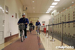 長江三峽左岸電站冬季檢修人員騎著自行車,穿梭在各發(fā)電機工作單元。三峽左岸電站冬季檢修項目近日已完成過半。在檢修過程中,工作人員仔細(xì)排除設(shè)備隱患,為發(fā)電生產(chǎn)和長期穩(wěn)定運行打下良好基礎(chǔ)。作者:孫榮剛