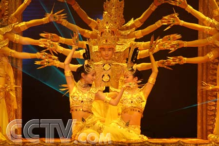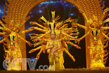 據(jù)該團領(lǐng)隊介紹,這是他們繼雅典版《千手觀音》之后,新改編的第三版,在動作編排上加強了舞蹈動作的質(zhì)感,增加了千手千眼的變換展示和觀音將愛灑向人間的舞蹈造型,還特別編排了“拜年的動作”,其中一個造型取名為“盛世開屏”,希望借此代表中國6000萬殘疾人給觀眾帶去美好的祝福。