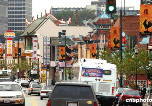 圖:洛杉磯中國城張掛雞年彩旗