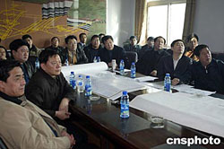 二零零五年二月十六日上午,國家安全生產(chǎn)監(jiān)督管理局局長王顯政(前右一)、副局長趙鐵錘(前左一)一行代表國務(wù)院安委會(huì)事故調(diào)查組,在發(fā)生特別重大瓦斯爆炸事故的遼寧海州立井事故現(xiàn)場,聽取事故搶險(xiǎn)小組對事故情況以及搶險(xiǎn)情況的匯報(bào)。遼寧省省長張文岳(前左二)、副省長劉國強(qiáng)(前右二)也參加會(huì)議。作者:盛佳鵬