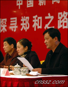 為紀(jì)念鄭和下西洋六百周年,中新社派出文字記者韓勝寶、攝影記者蔣振江,帶了一百多個探尋題目,采訪海內(nèi)外鄭和研究的專家學(xué)者,探訪鄭和的遺跡,從政治、軍事、航海、經(jīng)貿(mào)、文化、科技、外交、宗教等領(lǐng)域,通過文字和圖片全方位向世人揭示許多鮮為人知的鄭和之謎,宏揚(yáng)鄭和偉大的民族精神。探尋活動至七月十一日鄭和七下西洋紀(jì)念日前返回,歷時四個月。主要采訪地在東南亞一帶還有國內(nèi)的云南鄭和出生地、福建泉州鄭和停泊港和南京鄭和造船地。參加活動儀式的還有中新社副總編田惠明、總編輯助理張明新和江蘇分社社長陳光明。來自上海、南京、蘇州等地的新聞界人士也參加了儀式。