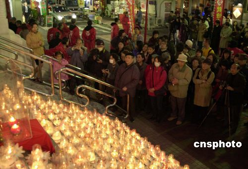 在橫濱中華街關(guān)帝廟前,當(dāng)?shù)厝A人華僑正在舉行獨具特色的“元宵祭燈籠祭”:用蠟燭配上蓮花底座,做成一盞盞祥和溫馨的“祈福蓮花燈”,再在外面罩上用彩筆寫上“招財進(jìn)寶”、“平安祈!,“合和美滿”、“生意興隆”,以至“世界和平”等祈愿字樣的透明燈罩,整齊地擺放在廟前的臺階上。在近千盞帶有眾人心愿的蓮花彩燈映襯下,平日肅穆的關(guān)帝廟此時也顯得溫情脈脈,一派祥和。