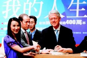 在排隊簽名的人龍中,有一名穿著紫色雪舫衫,黑色花裙亮眼的美女書迷,認(rèn)出來了嗎?她就是美女蕭薔,平常都是被粉絲包圍的蕭薔,今天成了美國前總統(tǒng)克林頓的超級粉絲。蕭薔說:“恭喜出書!鼻懊绹偨y(tǒng)克林頓則回答:“謝謝。”