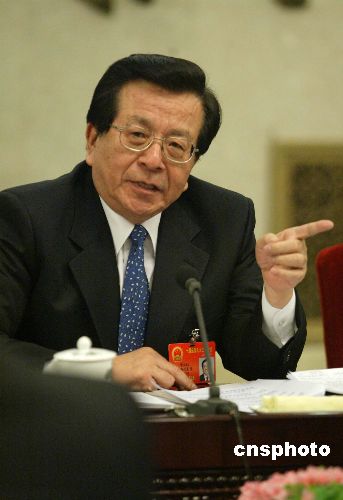 三月八日,全國(guó)人大內(nèi)蒙古代表團(tuán)在北京人民大會(huì)堂審議《反分裂國(guó)家法(草案)》。國(guó)家副主席曾慶紅參加審議,聽(tīng)取代表意見(jiàn)并發(fā)表講話(huà)。作者:廖文靜