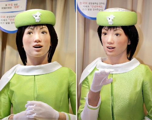 咨詢臺機器人職員是由日本可可洛公司和先進傳媒公司研制的,外表似二十多歲的日本女子,能聽懂四萬多個中文、英文、日文和韓文語句。
