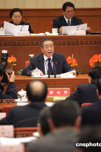 圖:主席團會聽取關(guān)于反分裂法草案審議結(jié)果的報告