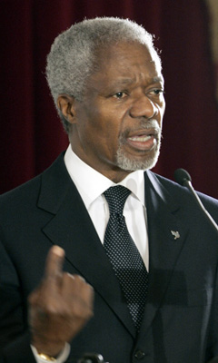 11日,在馬德里列車爆炸這一恐怖襲擊事件發(fā)生一周年之際,聯(lián)合國秘書長發(fā)表了演說,提議締結(jié)一個(gè)全面的條約,禁止恐怖主義、譴責(zé)以平民為目標(biāo)的襲擊,指出任何政治冤屈都不能成為殺害無辜者的合理辯解。他強(qiáng)調(diào)世界各國應(yīng)加強(qiáng)合作,為消滅恐怖主義進(jìn)行堅(jiān)決斗爭。