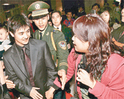 中新網(wǎng)3月17日電 據(jù)香港《大公報(bào)》報(bào)道,二○○五年度中國(guó)十佳勞倫斯冠軍頒獎(jiǎng)典禮昨晚在深圳舉行,出席運(yùn)動(dòng)員有劉翔、田亮等,頒獎(jiǎng)嘉賓則有劉嘉玲、成龍、郭富城等,運(yùn)動(dòng)員與明星互相輝映,星光熠熠,在場(chǎng)夾道歡迎的Fans為之瘋狂。當(dāng)中又以田亮表現(xiàn)最為親切,他主動(dòng)走向前同F(xiàn)ans“giveme five”,令Fans們樂開懷。看來田亮未有受與吳敏霞緋聞?dòng)绊憽?object align="left" classid="clsid:D27CDB6E-AE6D-11cf-96B8-444553540000" codebase="http:///pub/shockwave/cabs/flash/swflash.cab#version=5,0,0,0" height="250" width="350">