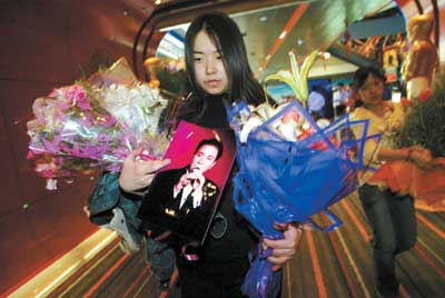 雖然張國榮已經離開了近兩年,但是他的影迷卻一直沒有忘記他。昨天,當記者來到影片《異度空間》首映式現場時發(fā)現,現場已經聚集了上百位張國榮的影迷,在影片海報旁擺滿了他們送來的白玫瑰和白百合,上面還插著“哥哥”的生前照片。而影院也配合播放著張國榮的歌曲,很多歌迷也在小聲地隨著哼唱。