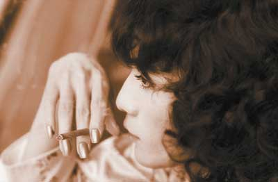 幾乎與話劇《琥珀》上映的同時(shí),劉燁的寫真集也應(yīng)景上市,其中一張三分之一側(cè)面的照片在網(wǎng)上引起了軒然大波。照片上的劉燁戴著長長的假睫毛,鬈鬈的假發(fā),指甲涂了蔻丹的手指夾著細(xì)煙,湊在光潤的唇邊,一個(gè)風(fēng)塵味十足的嫵媚女人。如果不說,沒有人能看出那是雙料影帝劉燁。特別是那濃密睫毛的大眼睛,薄嘴唇倒很像歌壇天后王菲。