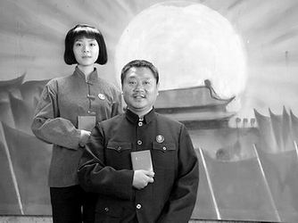 云南惠澤縣城照相館的墻上貼滿了各種顏色的標語,街上的大喇叭里播放著氣宇軒昂的“文革”歌曲。張靜初(春芬)身穿紅棉襖,胸前戴著一個碩大的毛澤東像章,范偉(老崔)穿著那時最時髦的中山裝,同樣也在胸前戴了一個碩大的毛澤東像章。照相的師傅讓兩人靠近一些,范偉拿著《毛主席語錄》往張靜初身上靠,“喀噠”一聲,一張20世紀70年代的經(jīng)典“結婚照”便完成了。(韓凱臣劉冰)