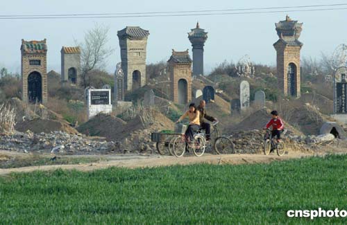 圖:關(guān)中地區(qū)土葬回潮 墓碑高過秦陵碑亭