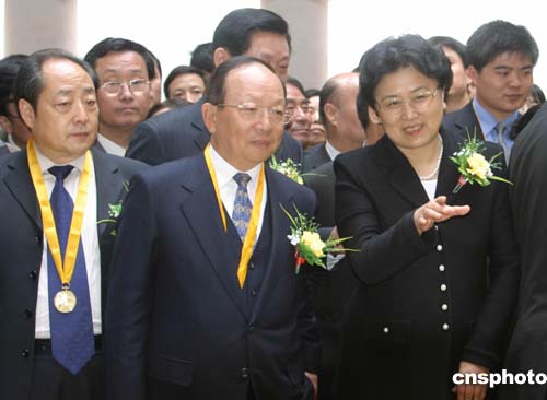 “乙酉年清明公祭軒轅黃帝典禮”4月5日在陜西橋山黃帝陵舉行,全國人大常委會副委員長許嘉璐,全國政協(xié)副主席、中央統(tǒng)戰(zhàn)部部長、中華海外聯(lián)誼會會長劉延?xùn)|,中國國民黨中常委蔣孝嚴(yán)共同祭拜中華民族始祖黃帝。圖為在軒轅殿劉延?xùn)|向蔣孝嚴(yán)介紹黃帝陵整修情況。作者:田地
