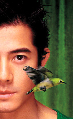 拍攝當(dāng)日,上海正值嚴(yán)寒夜,偌大的影樓更顯得寒氣逼人,當(dāng)人人身穿羽絨,唯獨(dú)城城背心一度,把他冷得手腳僵硬,大家見狀,急忙張羅暖風(fēng)機(jī)圍著“城城”,讓他取暖。原本有準(zhǔn)備長袖綠衣造型,但愛漂亮的“城城”堅決穿背心上陣。至于何以選用綠色與青鳥作今次海報的主調(diào)?“阿叔”表示:“因為綠色是今年流行的顏色,至于青鳥,可以是喜鳥,也可以是躍動,可以有好大想象空間。”拍攝時,“城城”坐在綠布幕前,加上燈光營造,他仿如綠翡翠般亮麗,甚具王者氣派。