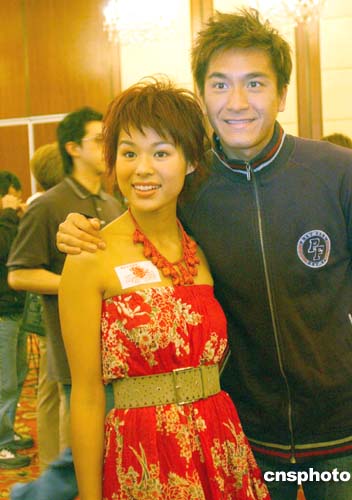 身穿露肩裝的胡杏兒與馬國明,近日出席無線劇集宣傳記者會(huì)。作者:譚達(dá)明