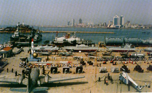 海上展艦區(qū)設在小青島連陸大堤的海灣內,那里停泊著退役的“長城號”潛艇、“鞍山號”導彈驅逐艦和“鷹潭號”航空導彈護衛(wèi)艦。鷹潭艦是我國第一代053K型艦對空導彈護衛(wèi)艦;鞍山艦是1954年我國從前蘇聯(lián)購進的第一批驅逐艦,此艦有著不平凡的經(jīng)歷,1936年建成,1941年編入蘇海軍太平洋艦隊,在第二次世界大戰(zhàn)中立下過赫赫戰(zhàn)功。