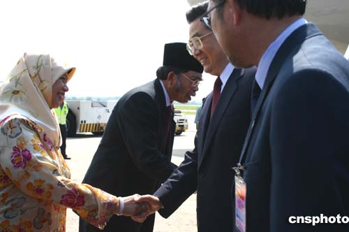 中新網(wǎng)4月20日電(記者 李靜)中國(guó)國(guó)家主席胡錦濤乘專機(jī)抵達(dá)文萊,文萊王儲(chǔ)夫婦到機(jī)場(chǎng)迎接。