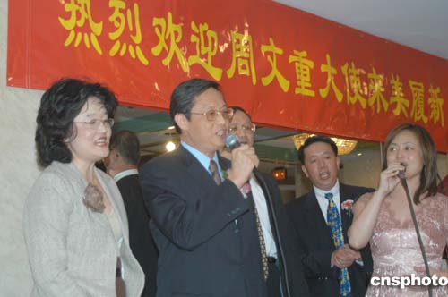 中新社華盛頓四月二十四日電 題:美僑界歡迎周文重三回華府 駐美大使履新誓言不負重托