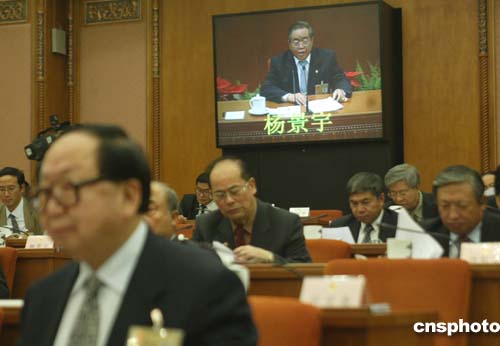四月二十六日,全國人大法律委員會主任楊景宇在北京人民大會堂作《關(guān)于公務(wù)員法修改意見的報告》,提請十屆全國人大常委會第十五次會議審議。作者:史利